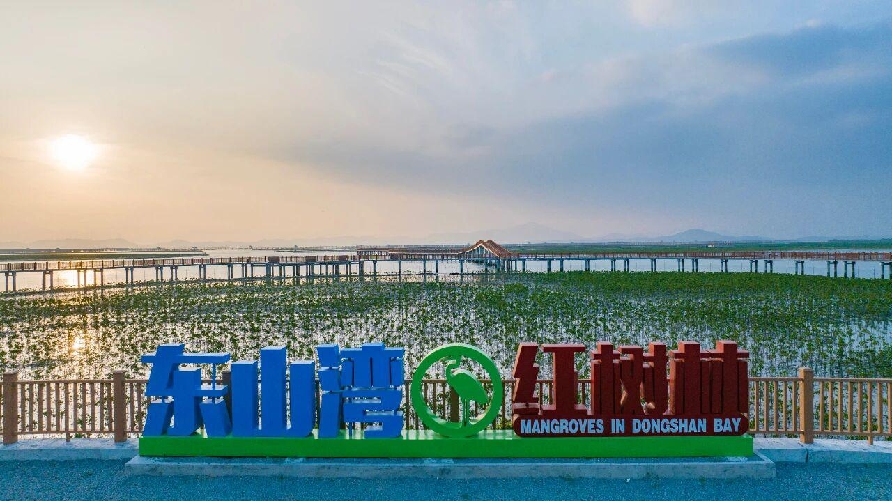 正在漳州东山县东山湾,200多公顷红树林绿意葱翠,一条木栈道仿佛飘带,舒展正在海面之上。间或有几只白鹭翩然飞过,栖落正在枝头、水畔。